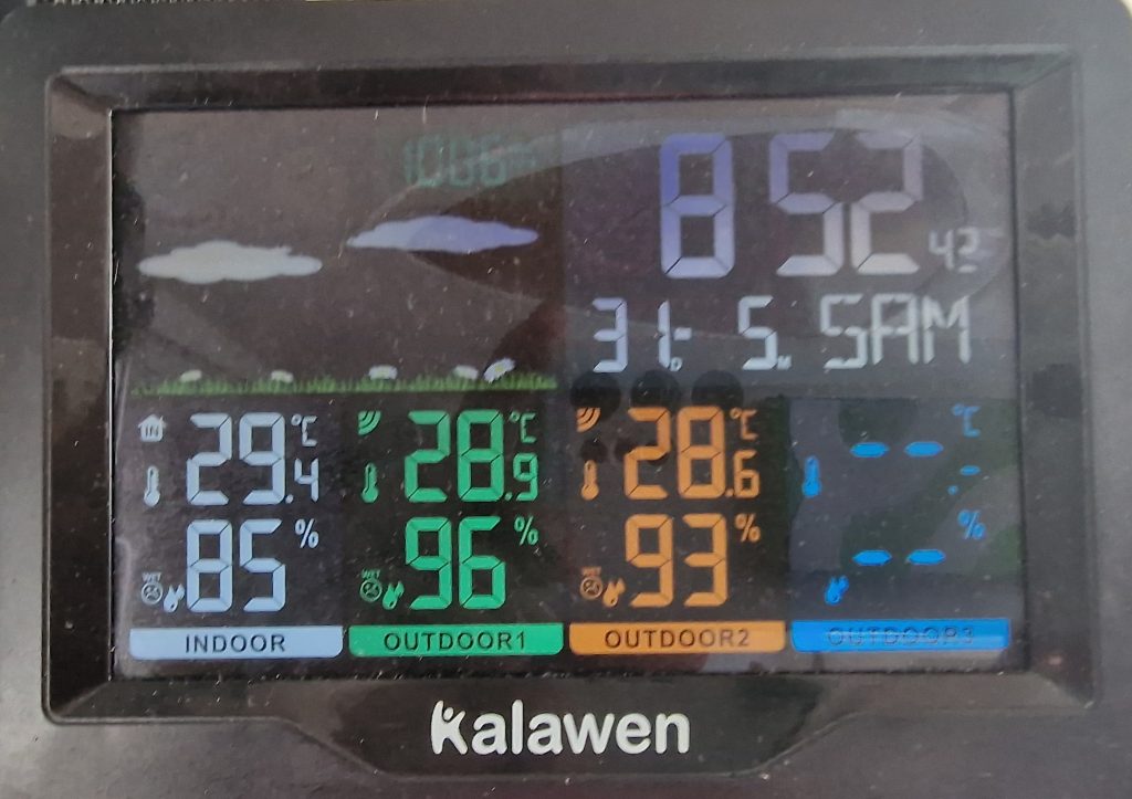 La météo n’est pas trop belle ce matin. Le taux d’humidité de 85 %. La preuve…