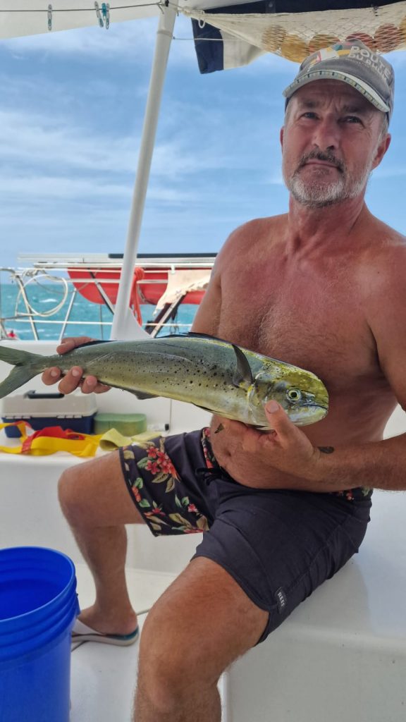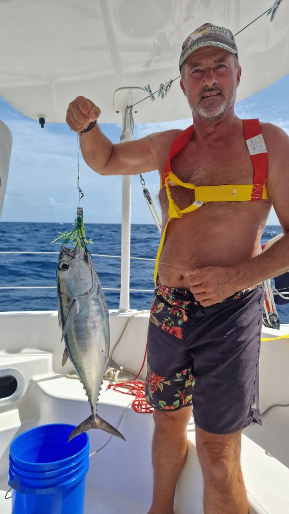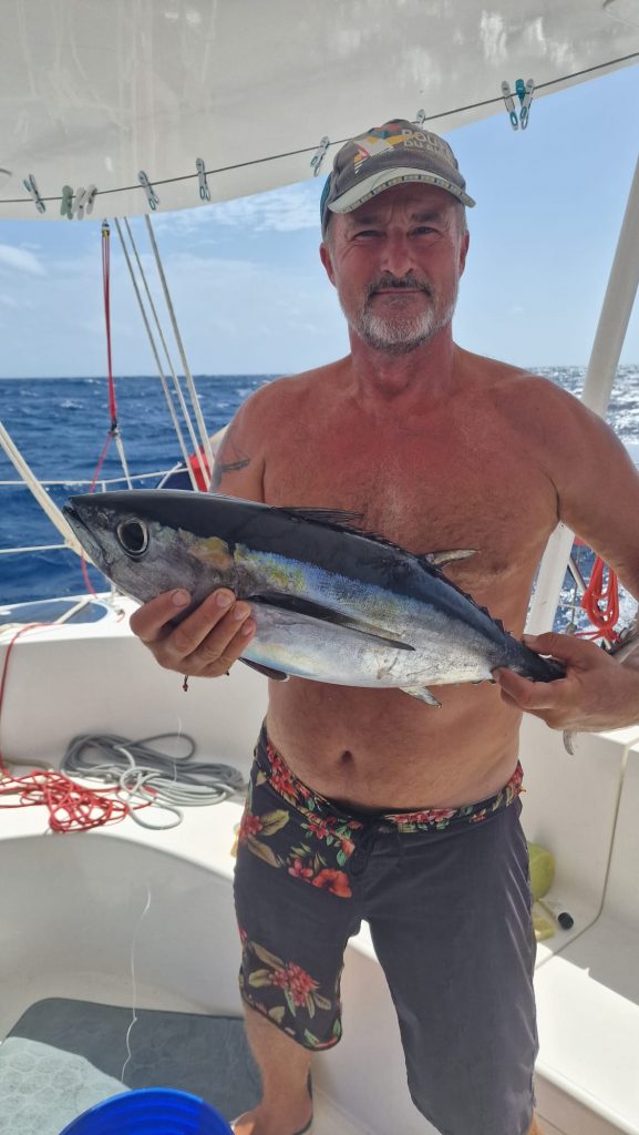 Et que fait le capitaine, outre la route ? Il pêche ! Et pas qu’un peu ! Une belle bonite.