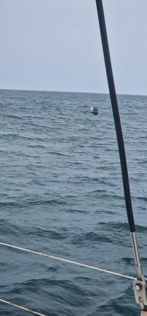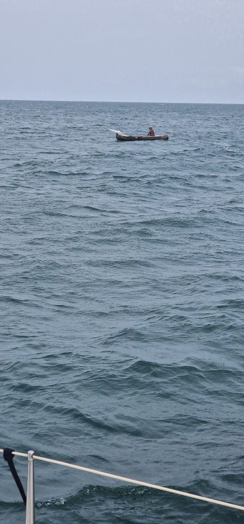 Rencontre avec quelques pêcheurs sur leur barque, sans moteur. Ils paraissent bien pauvres…