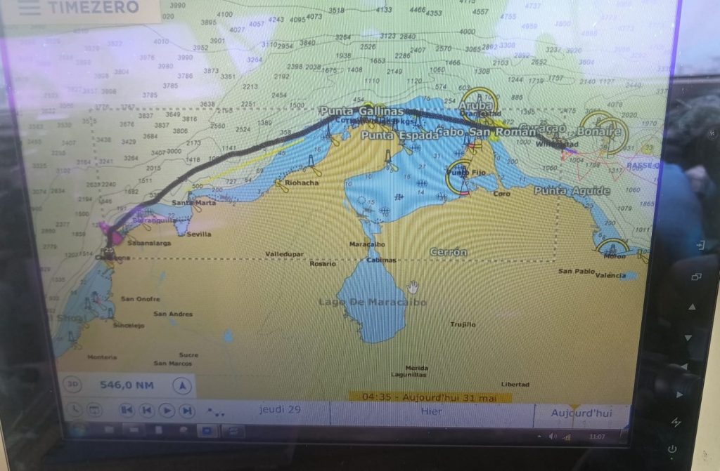 Et de fait, et comme la météo l’avait prévu, le vent tombe près de la côte colombienne. La dernière nuit, la moyenne chute. Mais c’est cela la voile.