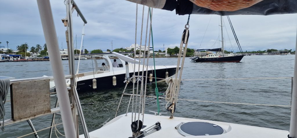 Au droit de Baranquilla, où un gros fleuve se déverse dans la mer, à 12 milles de la côte, soit une vingtaine de kilomètres, la couleur de l’eau est marronnasse. Quelle différence avec l’eau du Cabo de Vela !
